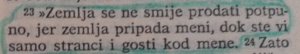 Ovo je Božja riječ upućena Izraelcima onoga vremena, a odnosi se na pravo vlasništva nad zemljom. Čija je zemlja? Kome pripada? Zemlja pripada Bogu jedan kroz jedan. Nema toga koji može reći da zemlja pripada bilo kome osim Bogu. Dobili su zemlju na upotrebu, a zatim se uknjižili kao vlasnici. Bog je dao zemlju na samoupravljanje narodu ali zu određene uvjete. Kako se ti uvjeti nisu poštivali tako su gubili, i na kraju izgubili, pravo da budu na toj zemlji. Uporno neispunjavanje uvjeta dovelo je do progona sa te zemlje. Sam taj čin jasno ukazuje čija je zemlja. Prkoseći Bogu ušli su na silu u tu zemlju. Sad je Bog na redu, ali znamo onu narodnu da Bog nije mačka da odmah ogrebe.