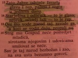 Taj narod je teška, uistinu teška i žalosna žrtva svoje glave i svog repa koji ih vode iz propasti u propast. I sad su žrtve glave i repa. Glava to im je svjetovna cionistička vlast, a rep koji kormilari, su njihovi rabini, duhovnici koji podupiru cionizam i nehumani pogled na svijet u kome su oni iznad drugih. Ta glava i taj rep moraju biti odsječeni, i bit će odsječeni.